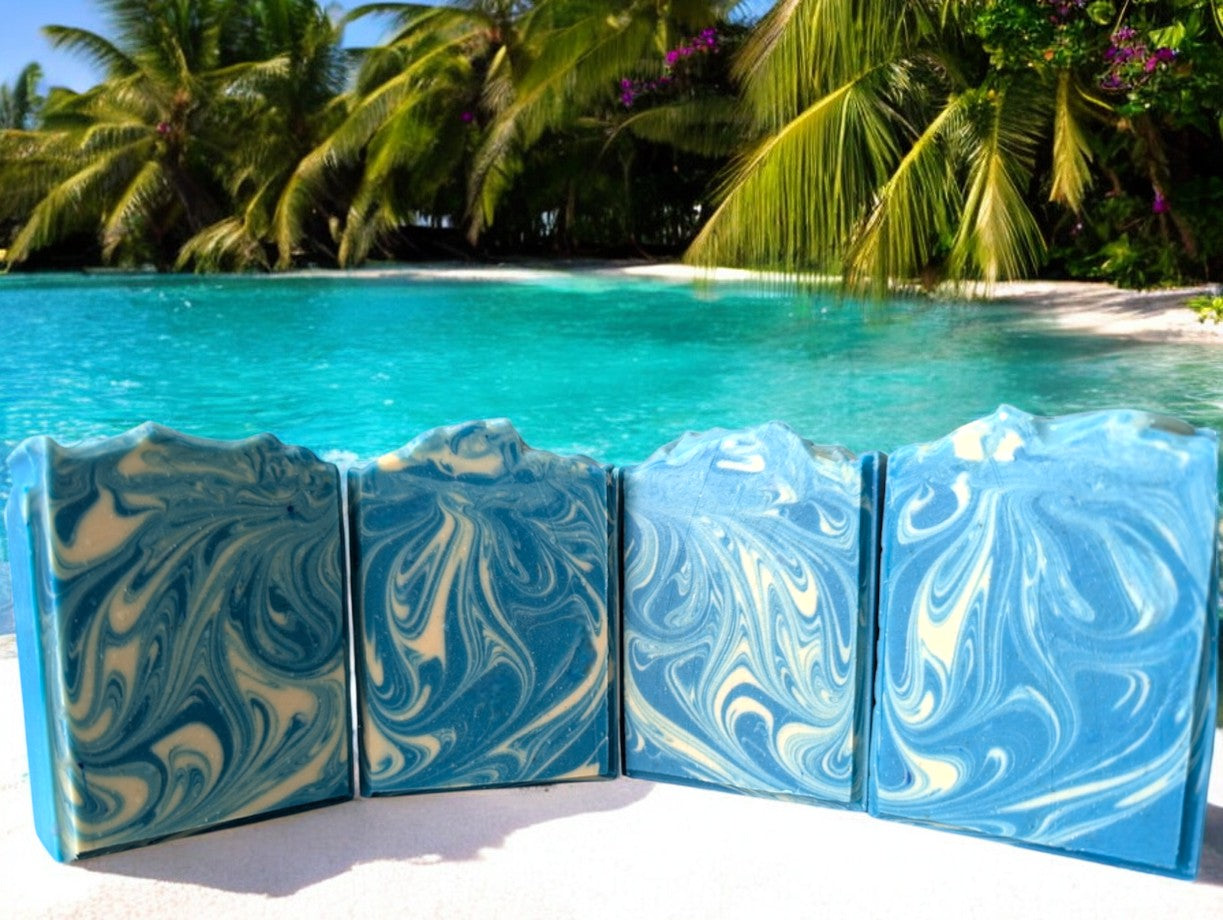 Welcome Hello Ken®! This soap perfectly pairs with our Hello Barbie! tallow and goat milk soap. Made in Ken's signature blue color with white swirls, it gives off a scent reminiscent of my daydreamed version of Ken - and comparable to Cool Water® by Z. Davidoff (M)*.