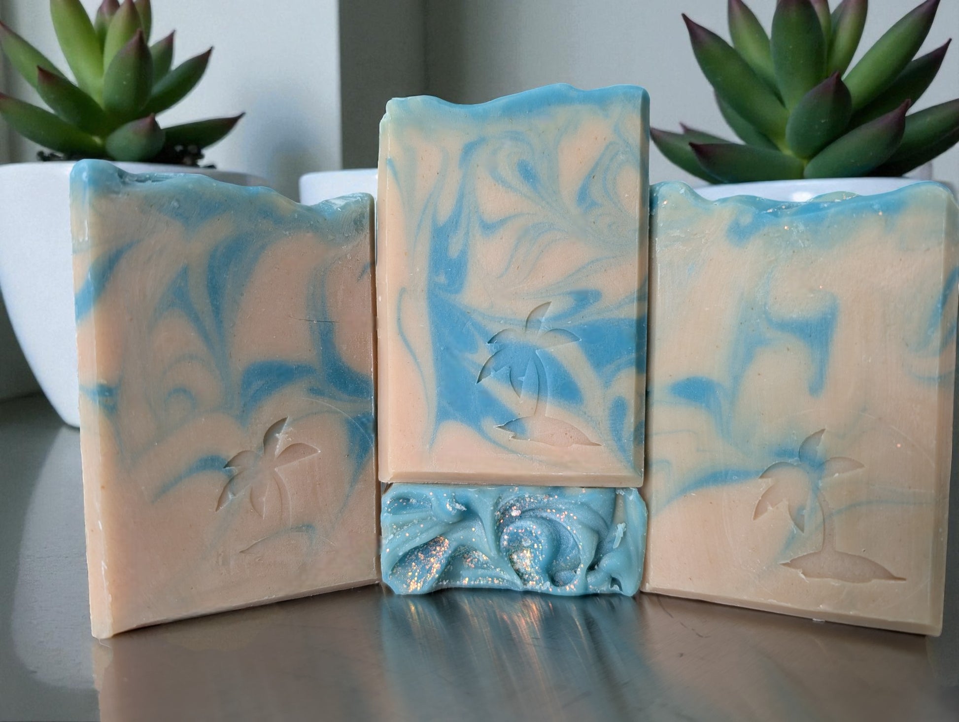 Skin Lovin' Ingredients in the Pot: Palm Oil, Coconut Oil, Goat Milk, Olive Oil, Lye, Rice Bran Oil, Kaolin Clay, Fragrance, Castor Oil, Sugar, Colloidal Oats, Sodium Lactate, Citric Acid Powder, Soap Nuts, Titanium Dioxide, Mica, Tussah Silk